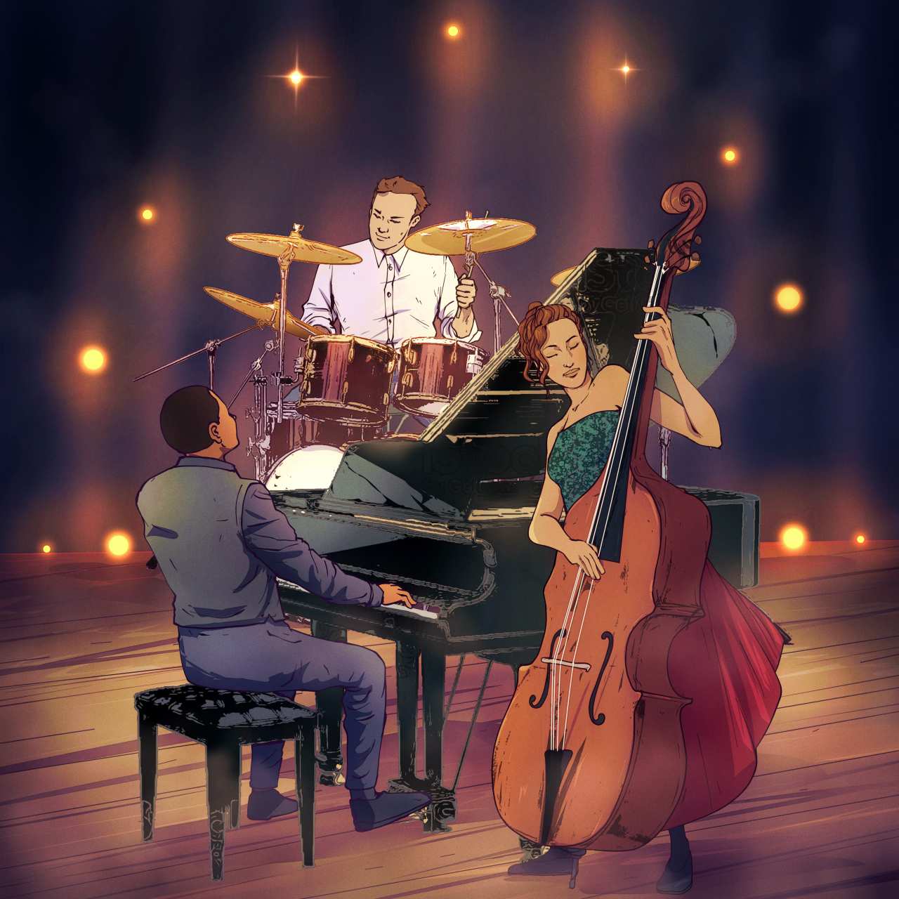 Piano, kontrabasso ja rummut vievät sinut musiikilliselle matkalle, jossa klassikot ja omat sävellykset kohtaavat. Anna jazzin taian viedä mukanaan!